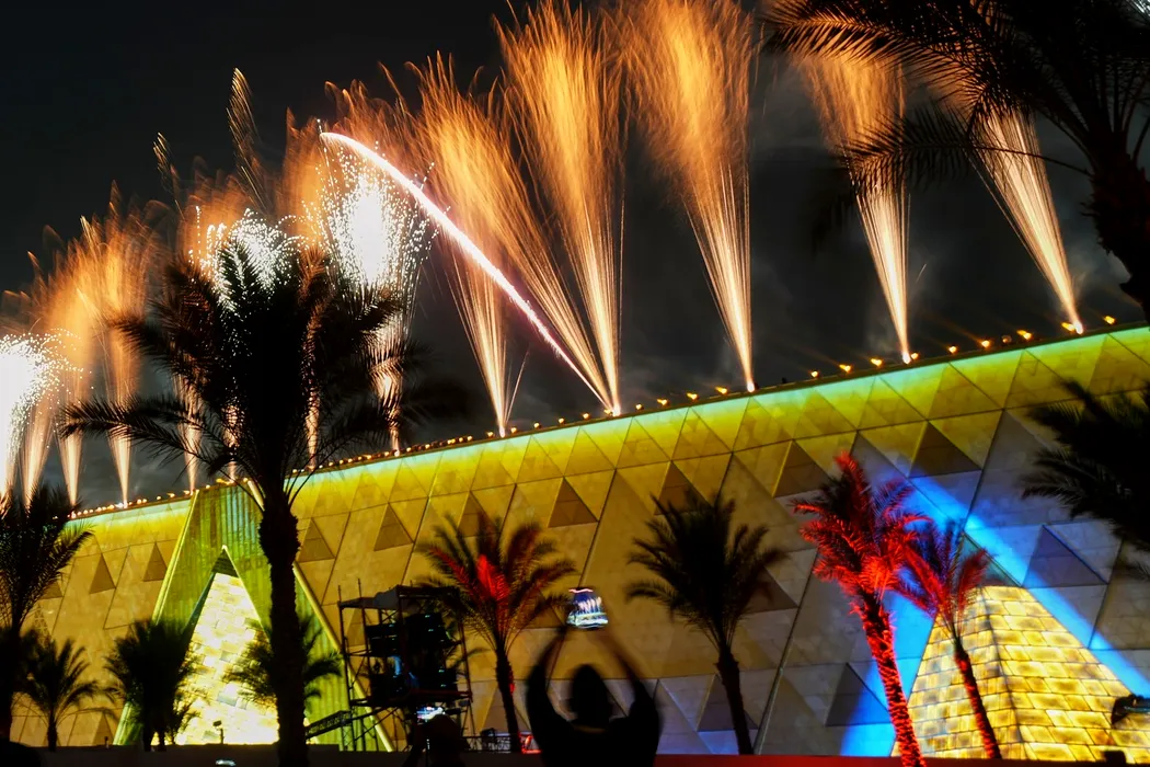 GALERIE FOTO: Antichitatea a întâlnit modernitatea pe cerul din Cairo. Sute de drone au compus chipuri de faraoni, zei­tăți și construcții-simbol ale Egiptului Antic. Un spectacol uriaș de artificii a încheiat ceremonia dedicată inaugurării celui mai mare Muzeu de Arheologie al lumii