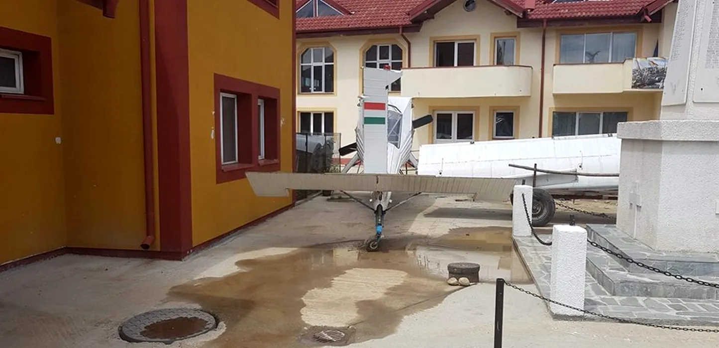 Monumentul care nu simbolizează NIMIC. O primărie din Argeș are UN AVION la poartă