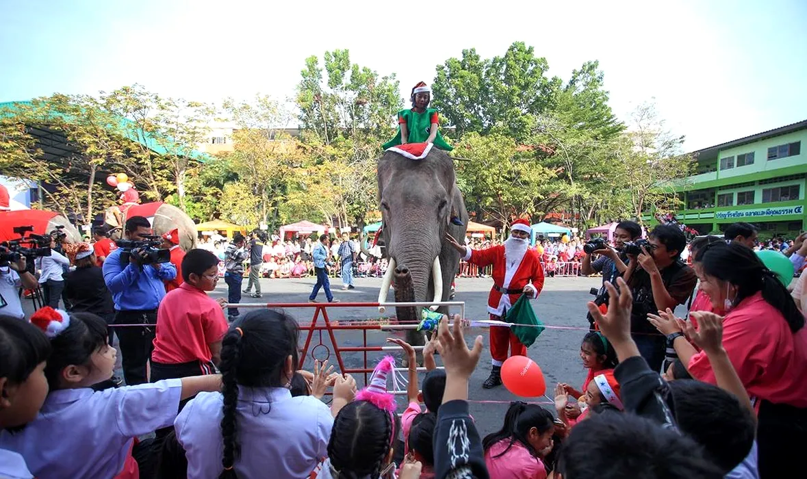 Moș Crăciun a renunțat la reni! În Thailanda, sania cu jucării este trasă de elefanți! Galerie FOTO și VIDEO