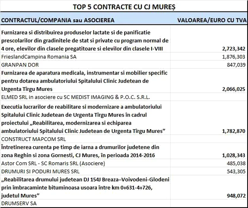 MUREȘ. Unde au mers banii publici în 2014. Topul firmelor care au contracte locale cu statul