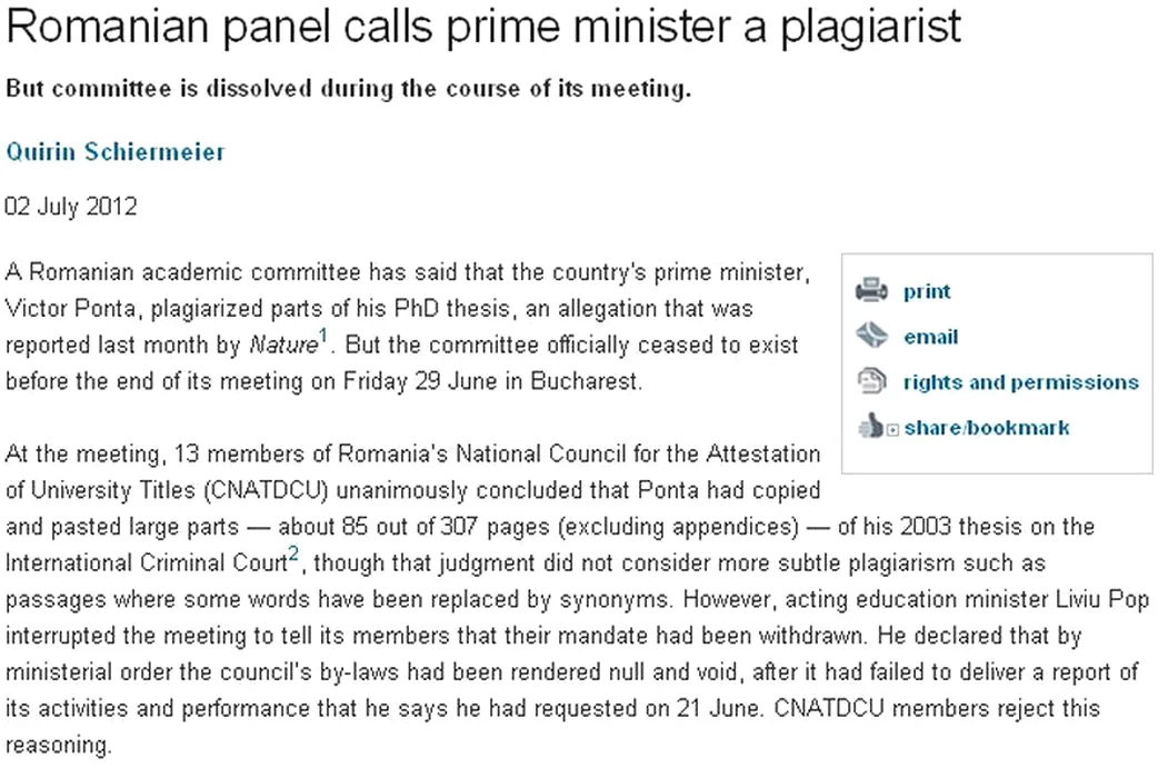 GALERIE FOTO: Nature.com: „Un comitet academic l-a numit pe PONTA PLAGIATOR, dar a fost dizolvat”