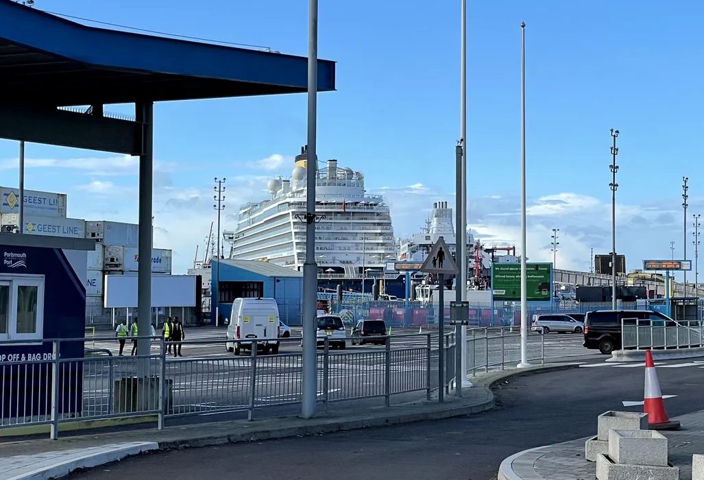 Saga Cruises's Spirit of Discovery in port at Portsmouth International Port. About 100 guests on board the cruise ship were injured with five suffering "more serious injuries" after it got caught in a storm in the Bay of Biscay. The Spirit of Discovery was on a 14-night cruise to the Canary Islands when it was hit by the bad weather conditions last weekend. Picture date: Tuesday November 7, 2023.,Image: 820453273, License: Rights-managed, Restrictions: , Model Release: no