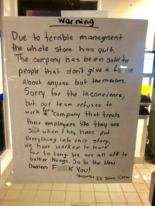 Ne-am săturat de ȘEFII ORIBILI! Toți angajații unui restaurant din SUA au DEMISIONAT peste noapte. Mesajul lor de ADIO a devenit viral