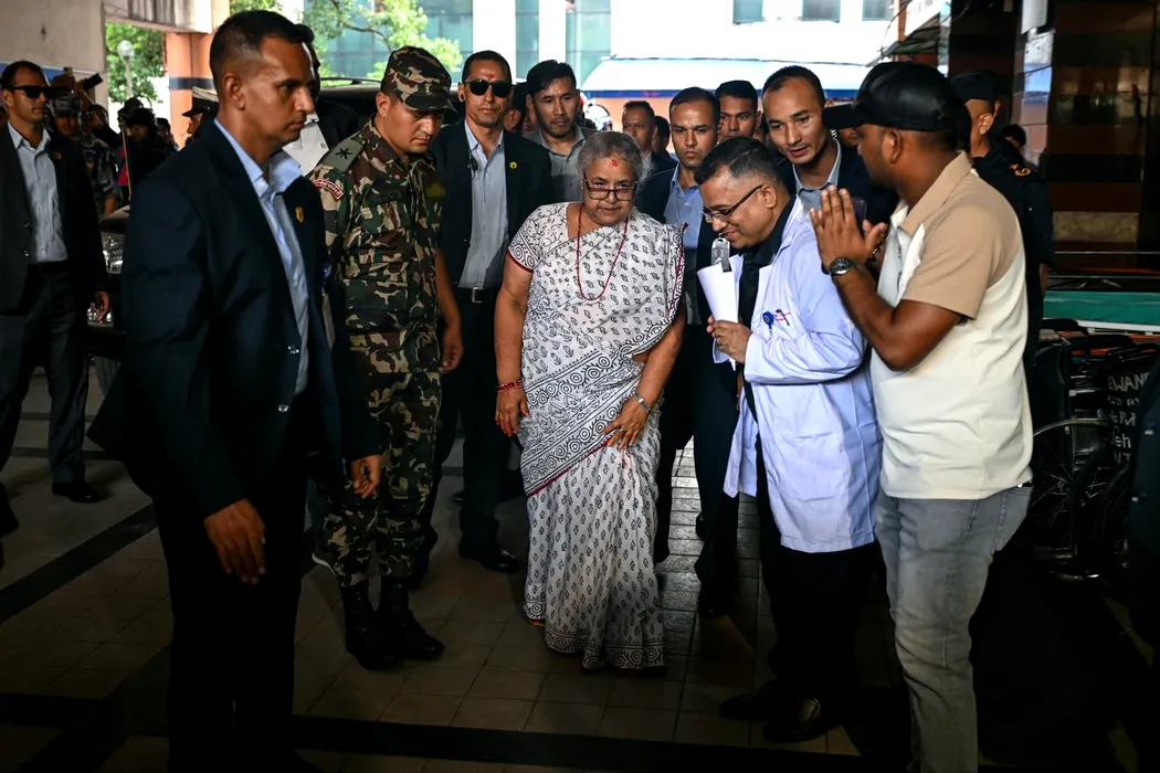 Noul prim-ministru al guvernului interimar al Nepalului, Sushila Karki, sosește la spitalul Centrului Național de Traumă pentru a vizita victimele rănite în ciocniri cu personalul de securitate, în Kathmandu.