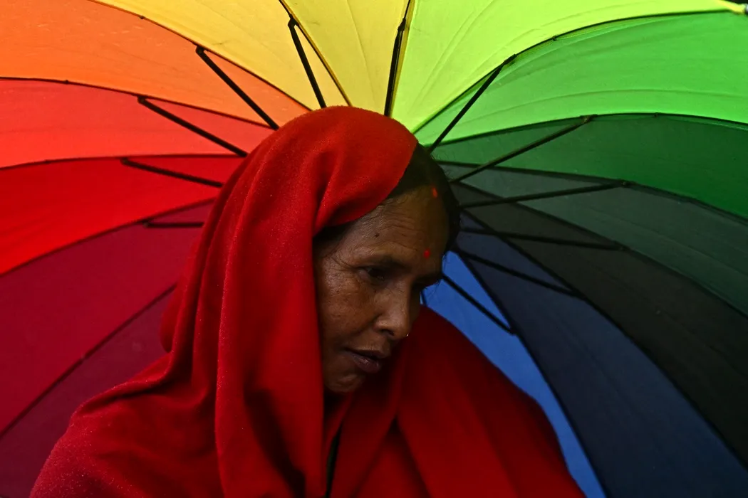 O femeie participă la un ritual de incinerare la templul Pashupatinath, lângă râul Bagmati, în timpul unei interdicții impuse pentru a restabili legea și ordinea în Kathmandu.