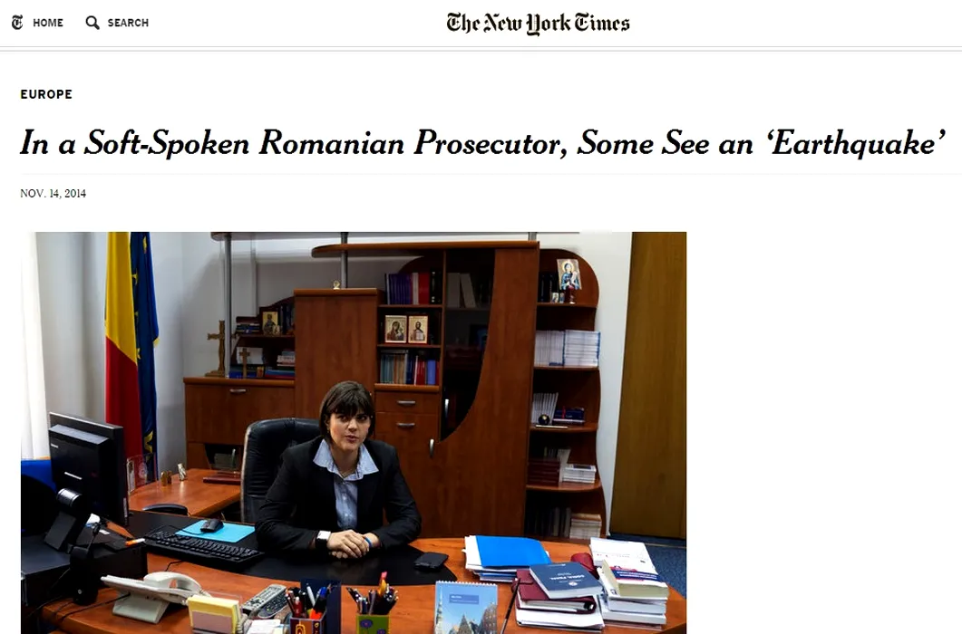 New York Times îi face profilul Laurei Codruța Kovesi: Unii văd în șefa DNA un „cutremur”