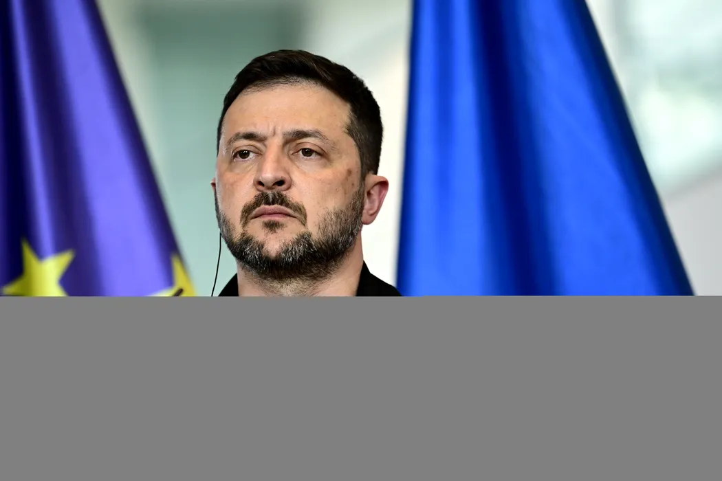 13 August 2025, Berlin: Ukrainian President Volodymyr Zelensky speaks during a press conference German Chancellor Friedrich Merz after the virtual consultations between European heads of state and government in the Chancellery with a view to the meeting between US President Donald Trump and Russian President Vladimir Putin. Photo: Fabian Sommer/dpa