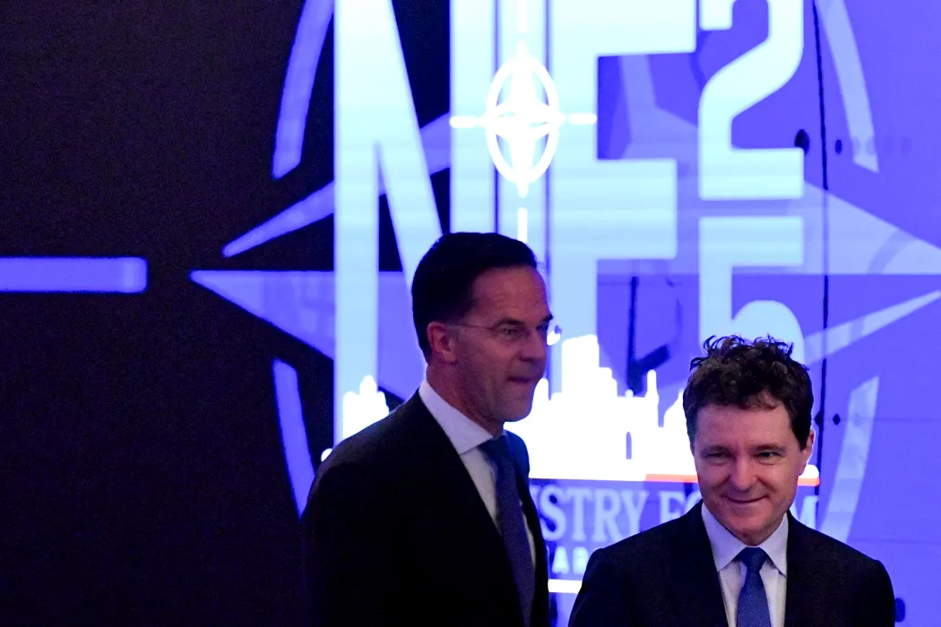 Presedintele Nicusor Dan (D) si Secretarul general al NATO, Mark Rutte (S), participa la Forumul Industriei de Aparare a NATO, un eveniment de nivel strategic care faciliteaza colaborarea directa si continua intre NATO si industria de aparare, desfasurat in Bucuresti, joi, 6 noiembrie 2025. ALEXANDRU DOBRE / MEDIAFAX FOTO