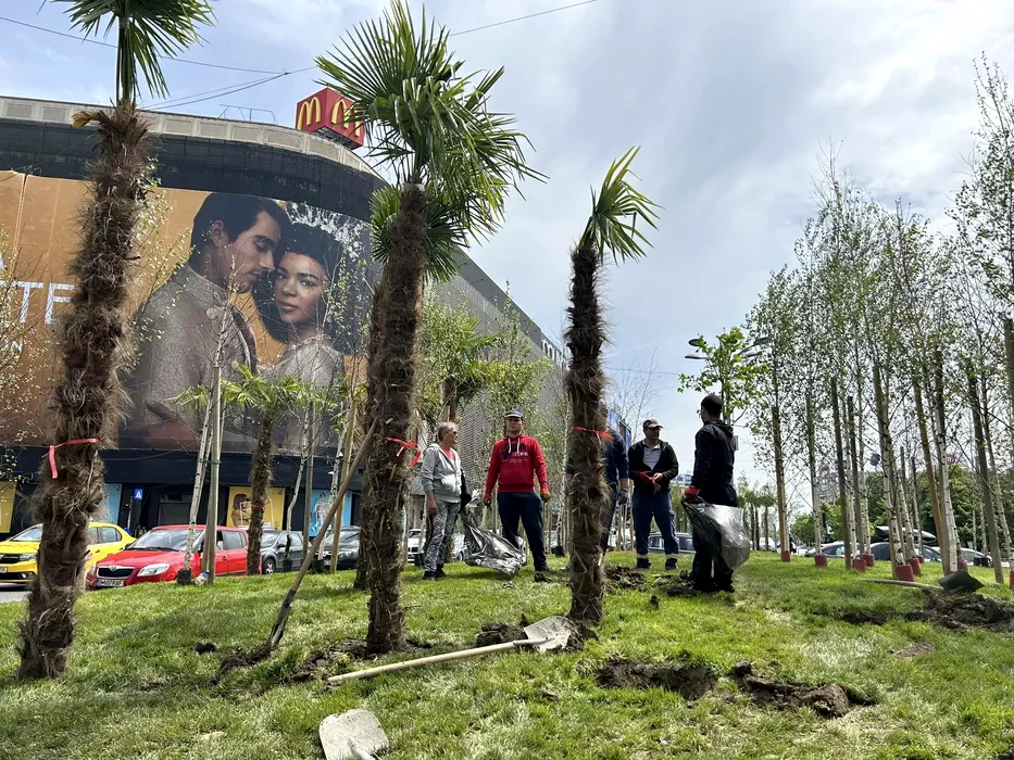FOTO. Nicușor Dan SCOATE palmierii plantați de Robert Negoiță la Piața Unirii. „Nu a cerut voie”. Negoiță: „Face un circ ieftin”