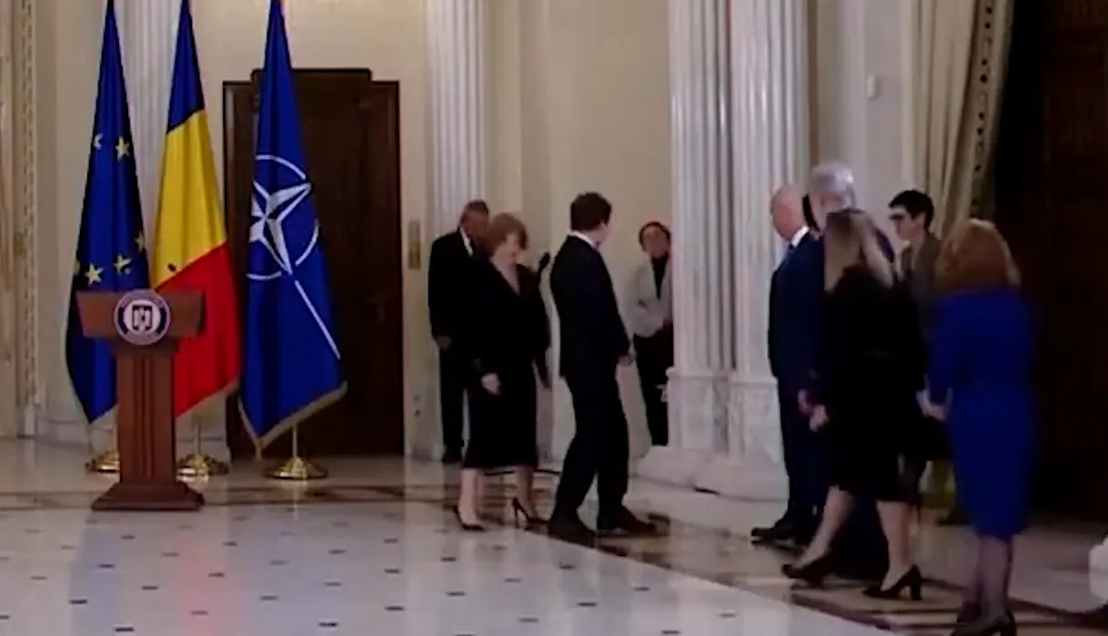 Nicuşor Dan, un NOU moment de derută. De data asta, la ceremonia de învestire a Oanei Gheorghiu. Președintele nu a ştiut unde să se așeze la final. Îi indică şefa protocolului ce are de făcut şi unde să meargă