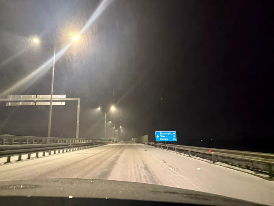 GALERIE FOTO: Ninsoarea a pus stăpânire pe drumul express Craiova-Pitești. Nu este niciun utilaj de deszăpezire și șoferii sunt disperați