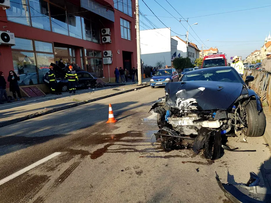 Nissan Skyline GTR, distrus în urma unui accident în Timișoara. Două persoane au fost rănite