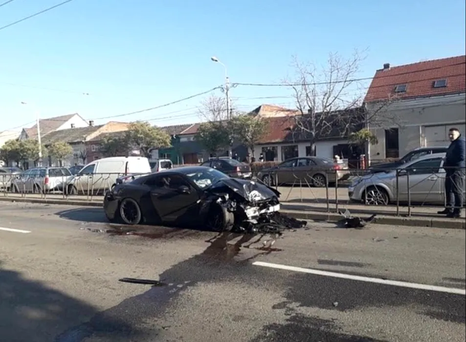Nissan Skyline GTR, distrus în urma unui accident în Timișoara. Două persoane au fost rănite
