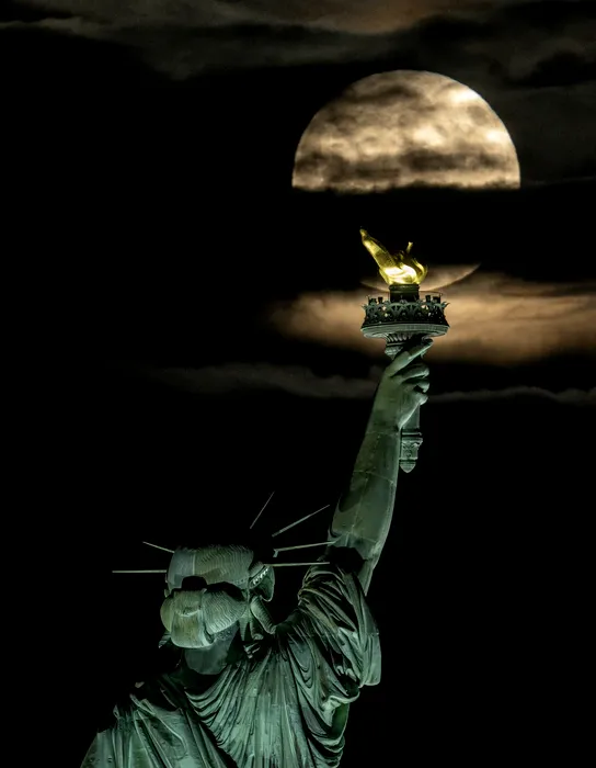 Statuia Libertății din New York City, fotografiată cu Superluna albastră. Profimedia