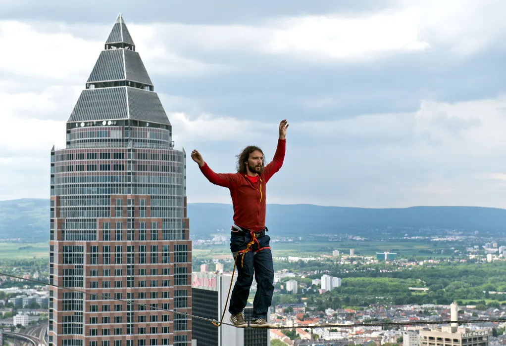 Nou record mondial pentru traversare la înălțime, pe un turn din Frankfurt
