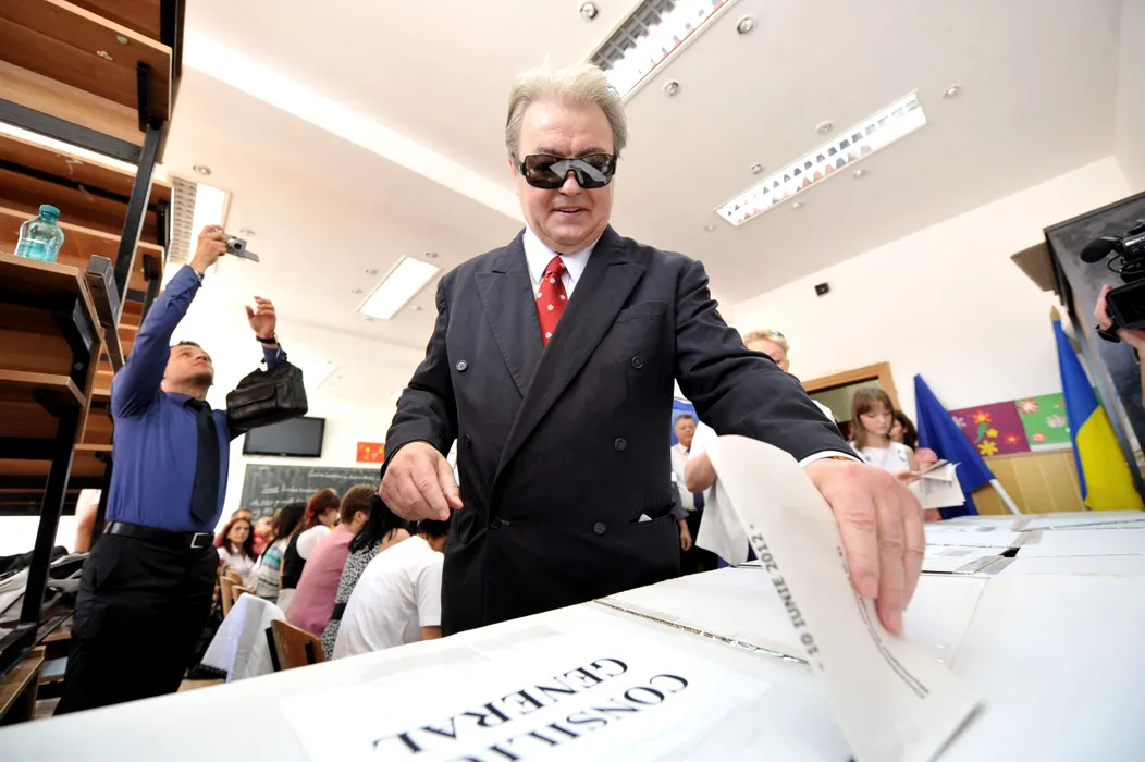 Corneliu Vadim Tudor, presedinte PRM si candidat la functia de consilier in Consiliul General al Municipiului Bucuresti, voteaza la sectia de votare din interiorul Scolii Generale Nr. 150 "Sf. Elefterie", in Bucuresti, duminica, 10 iunie 2012. Un numar de 41 de mandate de presedinte de consiliu judetean, 1.338 de mandate de consilier judetean, 3.187 mandate de primar si 40.311 mandate de consilier local urmeaza sa fie atribuite in urma scrutinului de duminica, la care sunt asteptati peste 18 milioane de cetateni cu drept de vot. ANDREEA ALEXANDRU / MEDIAFAX FOTO
