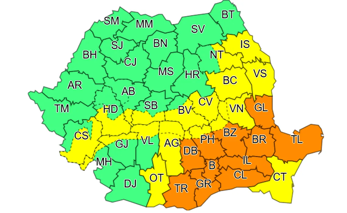 Nouă informare ANM: Zece județe și Capitala rămân sub COD PORTOCALIU de viscol și ninsori, alte 17 sub COD GALBEN. Școli și drumuri închise, peste 60 de trenuri anulate în toată țara. HARTA regiunilor afectate. UPDATE