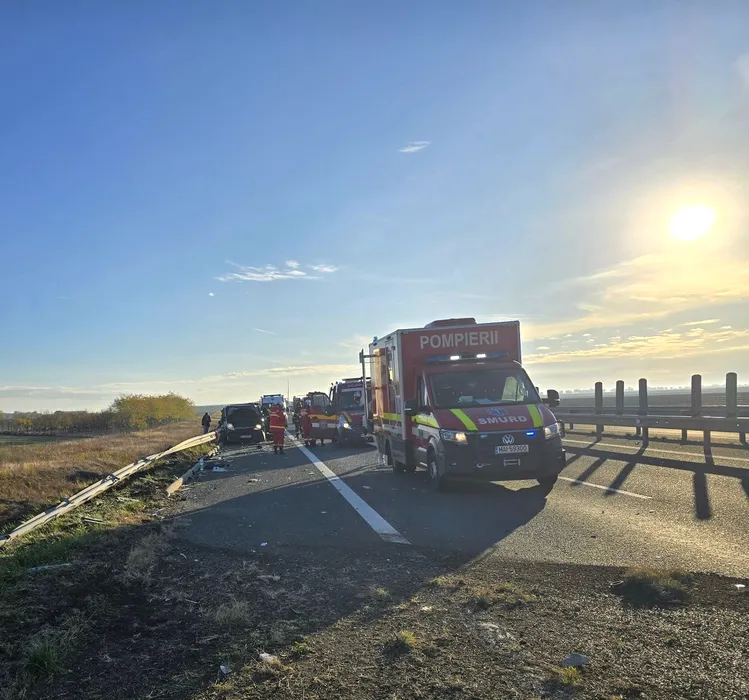 Opt persoane au fost RĂNITE, după impactul dintre un microbuz și un TIR pe A1. Accidentul a avut loc la kilometrul 570, pe sensul de mers Arad-Nădlac