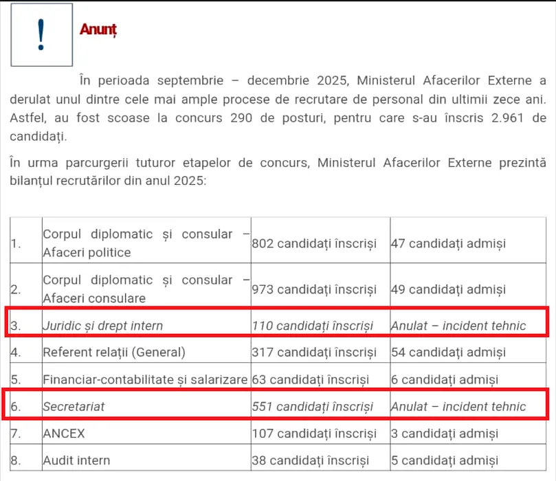 GALERIE FOTO: Nu doar alegerile se anulează fără explicații, ci și concursurile de angajare din MAE. Sute de candidați au aflat că au dat degeaba interviul din cauza unui „incident tehnic”/ Sursele Gândul dezvăluie motivul uluitor pentru care concursurile au fost anulate