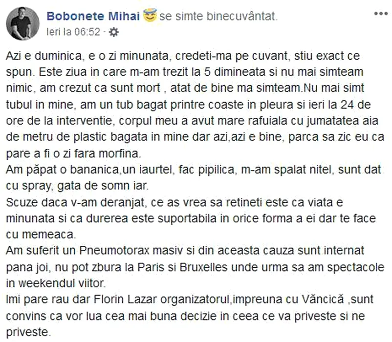 Nu mai simțeam NIMIC, am crezut că sunt MORT. Am păpat o bănănică, fac pipilică, gata de SOMN iar! Unul dintre cei mai populari actori, OPERAT de urgență
