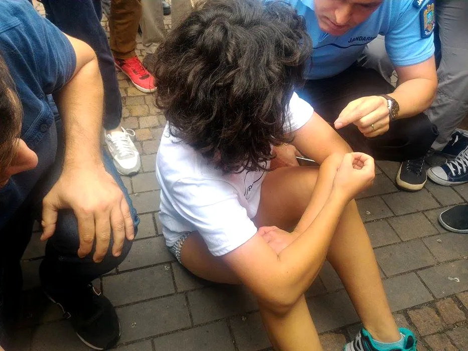 O actriță susținătoare a drepturilor LGBT a provocat un incident la marșul Noii Drepte din Cluj. Tânăra, urcată cu forța în dubă de jandarmi. GALERIE FOTO și VIDEO