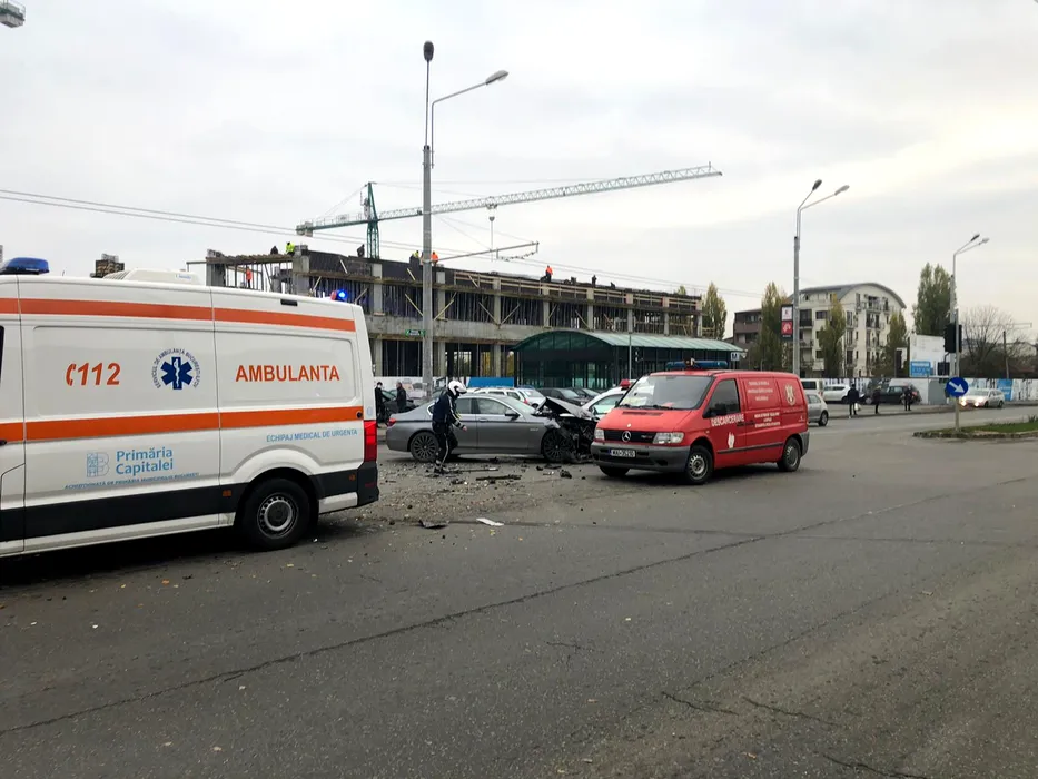 GÂNDUL LIVE. O ambulanță din Capitală a fost lovită atât de tare de un BMW încât a fost răsturnată! IMAGINI ULUITOARE!
