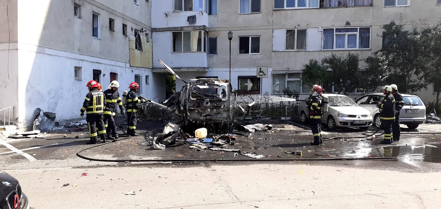 O autoutilitară încărcată cu butelii de oxigen a explodat în Râmnicu Vâlcea. Două persoane au fost rănite – FOTO&VIDEO