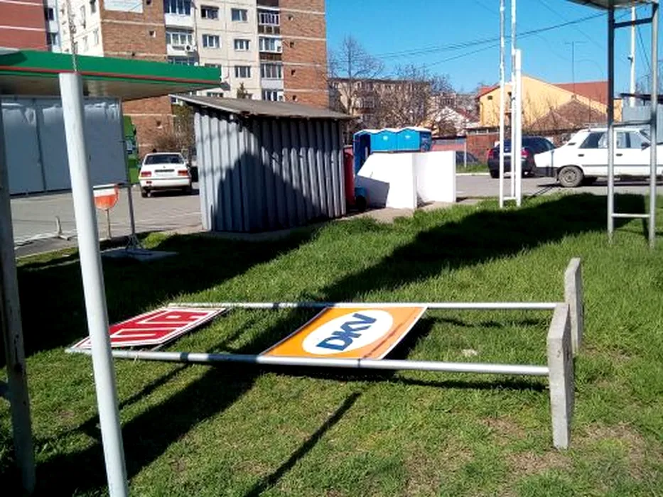 O bătrână a ajuns la spital după ce a fost lovită de un panou publicitar de 2,5 metri