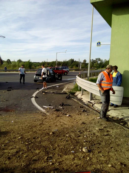 O camionetă s-a oprit într-un restaurant din Sibiu, după ce șoferul nu a acordat prioritate și a lovit o mașină (FOTO)