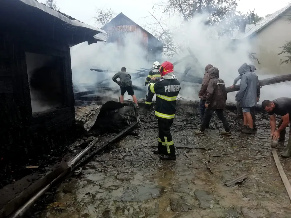 O casă din Suceava a luat foc, după ce a fost lovită de trăsnet (FOTO – VIDEO)
