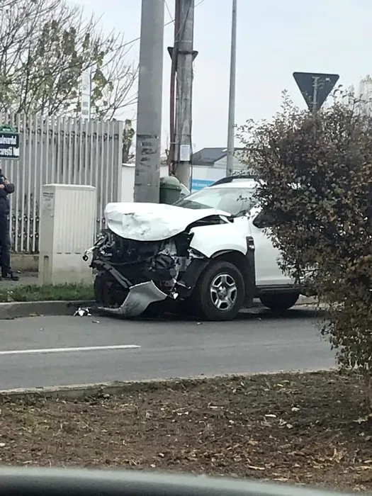 O dubă de la Serviciul pentru Acțiuni Speciale cu semnalele pornite, acroșată de un SUV în Capitală