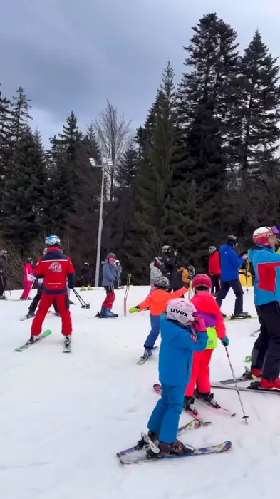 O familie de urși i-a luat prin surprindere pe schiorii din Poiana Brașov. Cei trei frați blănoși s-au jucat nestingheriți pe pârtie și au alunecat pe zăpadă