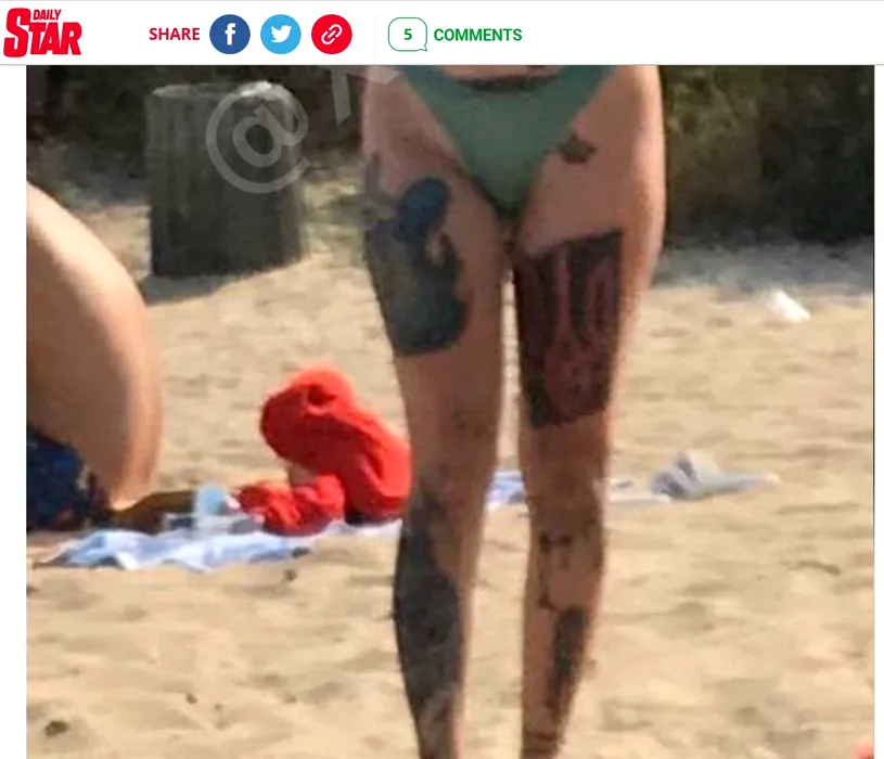 O femeie cu tatuaje naziste i-a îngrozit pe turiștii de la malul Mării Negre, în Ucraina / Foto: Captură Daily Star