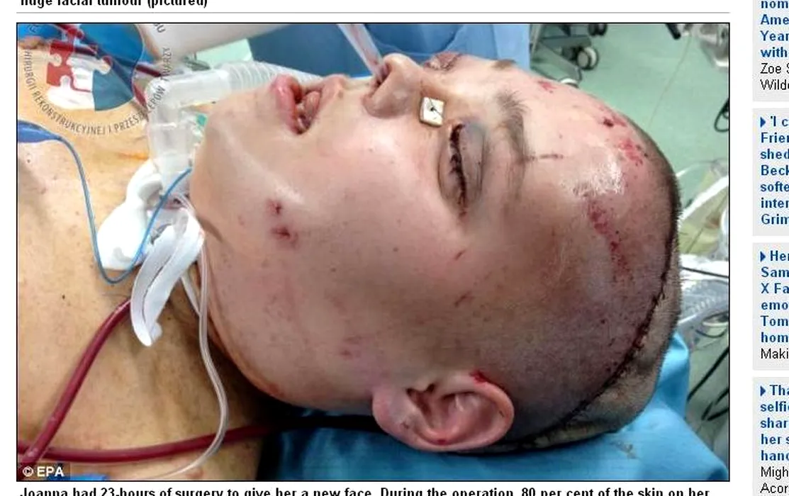 O femeie desfigurată de o tumoare gigant, supusă unui transplant facial total