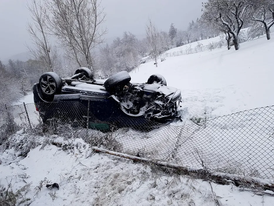 O femeie și doi copii, răniți după ce mașina în care se aflau s-a răsturnat pe o șosea înzăpezită din județul Cluj