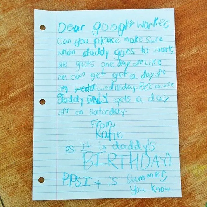 O fetiță a trimis o scrisoare către Google în care cerea o zi liberă pentru tatăl său. Răspunsul a fost de milioane