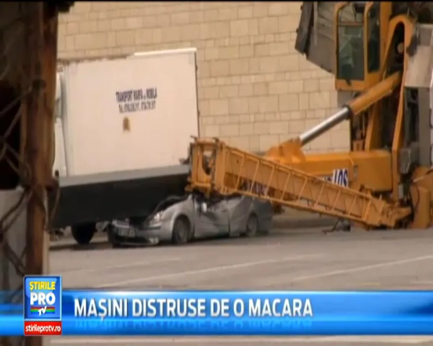 O macara A STRIVIT o mașină în parcarea unui mall din Suceava. Ce s-a întâmplat cu șoferul autoturismului