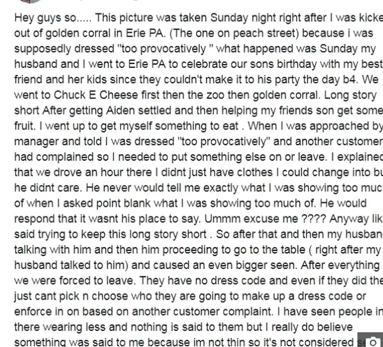 O mamă a fost dată afară dintr-un restaurant, chiar când serba ziua fiului ei, după ce un client s-a plâns că era îmbrăcată „prea provocator”