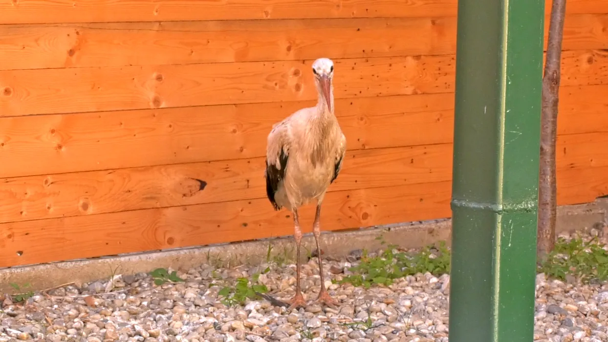 O barză care are nevoie de încă ceva timp pentru a se recupera și pentru a părăsi centrul. Deocamdată, ea este pe mâinile îngrijitorilor/Sursă Foto - Gândul
