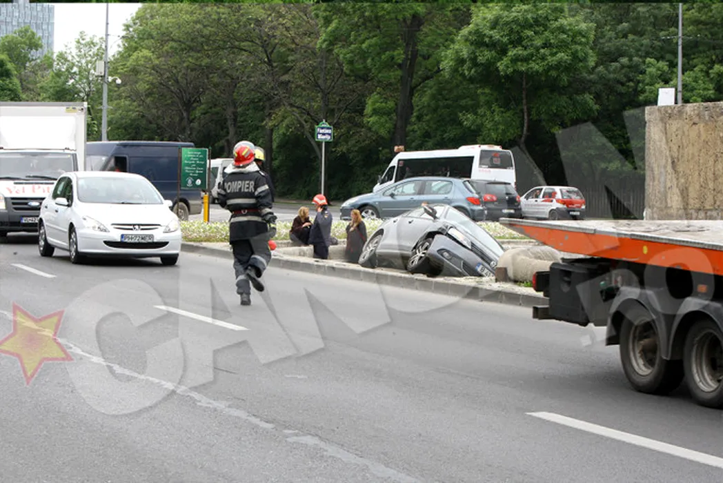 GALERIE FOTO: O mașină a ajuns în Fântâna Miorița și două persoane au fost rănite, în urma unui accident