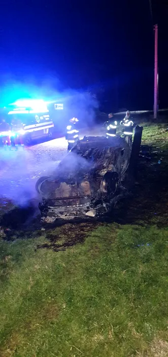 O mașină a luat foc, în județul Caraș-Severin. Pompierii au găsit în interior o persoană carbonizată