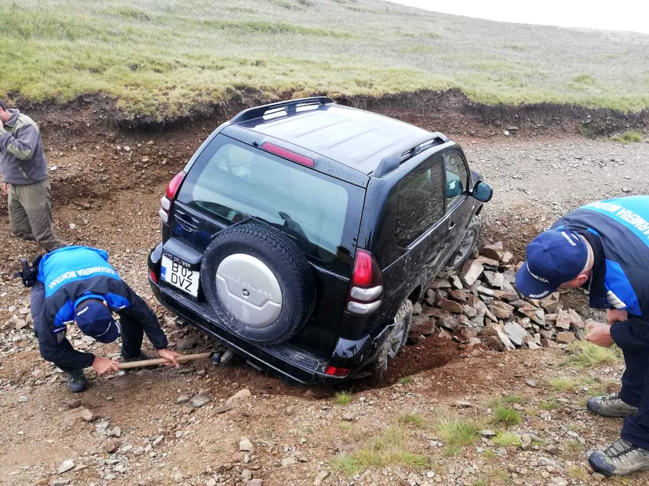 O mașină cu patru turiști, derapată într-o râpă în Masivul Iezer