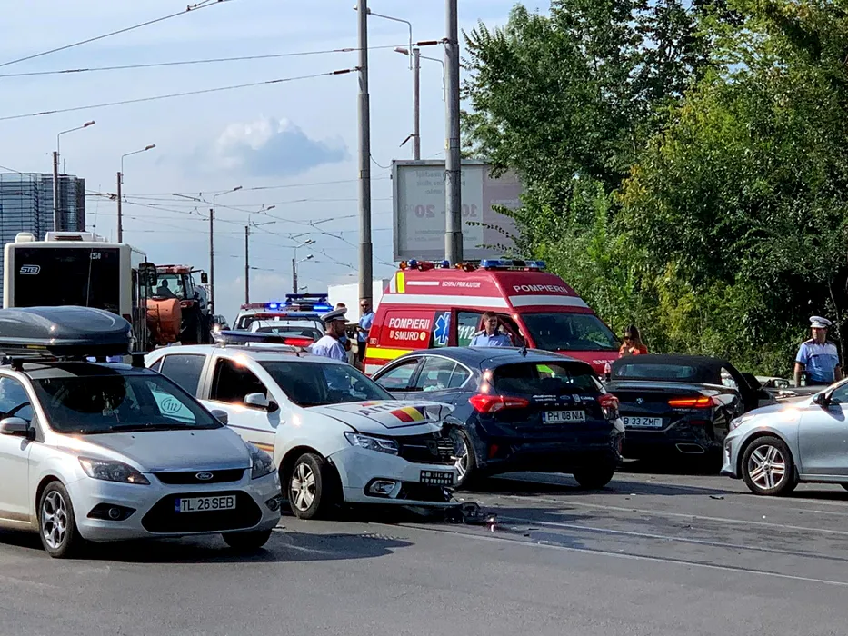 O mașină de poliție a intrat într-un BMW decapotabil la Băneasa. VIDEO & FOTO Exclusiv