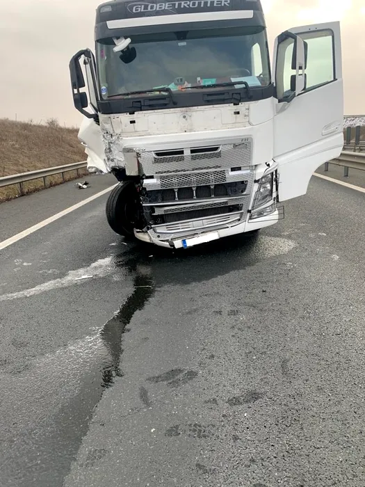 Accident pe A1, soldat cu trei răniți. O mașină oprită pe banda de urgență, după ce i s-a făcut rău unui pasager, a fost lovită de un TIR