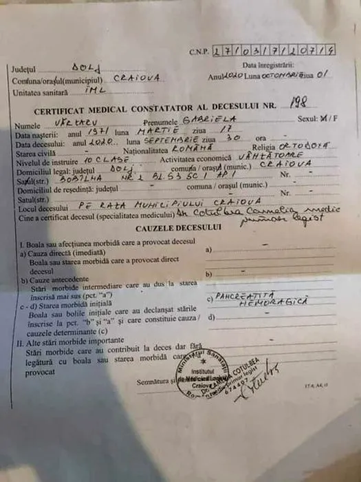 O nouă tragedie în familia femeii din Craiova care a murit la trei ore după ce medicii au trimis-o acasă. Fiul ei de 27 de ani a căzut de la etaj!