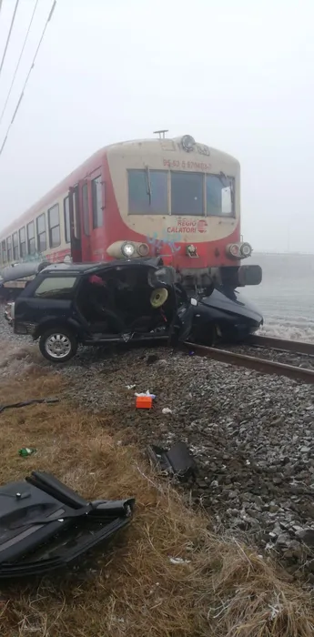 GALERIE FOTO: O persoană a murit, iar alta e grav rănită, după ce mașina în care se aflau a fost lovită de un tren în Arad FOTO