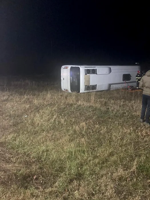 O persoană A MURIT și alte patru au fost rănite, după ce un microbuz s-a răsturnat pe un drum din județul Galați