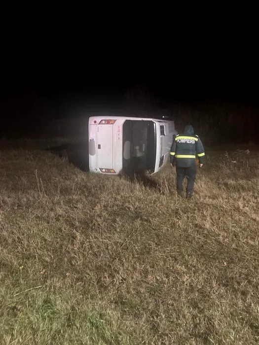 O persoană A MURIT și alte patru au fost rănite, după ce un microbuz s-a răsturnat pe un drum din județul Galați