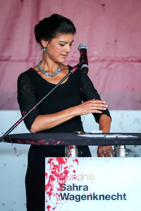 O politiciană din Germania a fost stropită cu un lichid roșu în timpul unui miting electoral