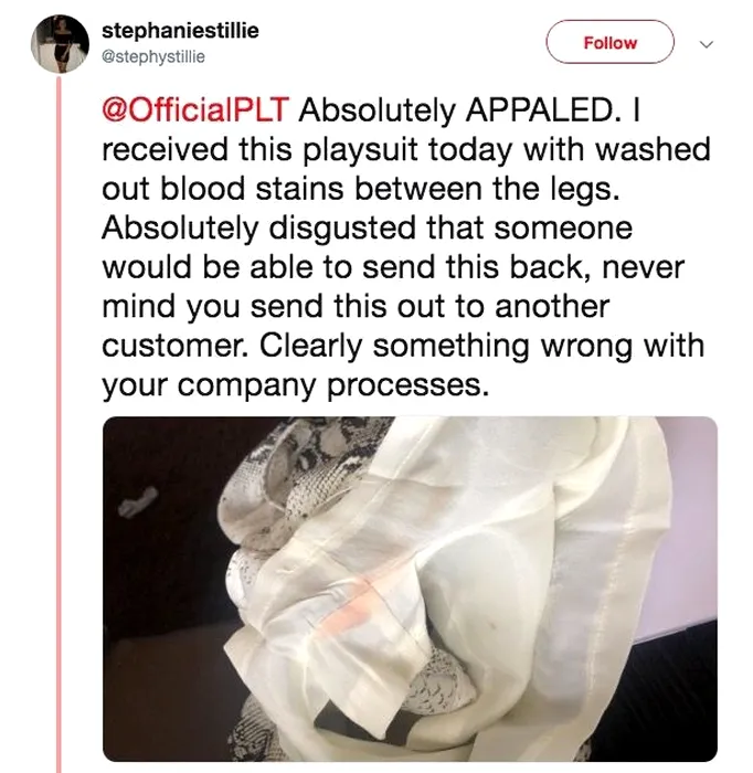O tânără a descoperit o pată roșie de „proveniență necunoscută” în interiorul pantalonilor cumpărați de la un retailer celebru. „Mi s-a făcut rău, era să vomit”
